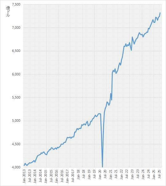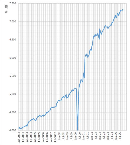 小売売上高(億ドル)の推移 グラフの下にある注をかならずお読みください