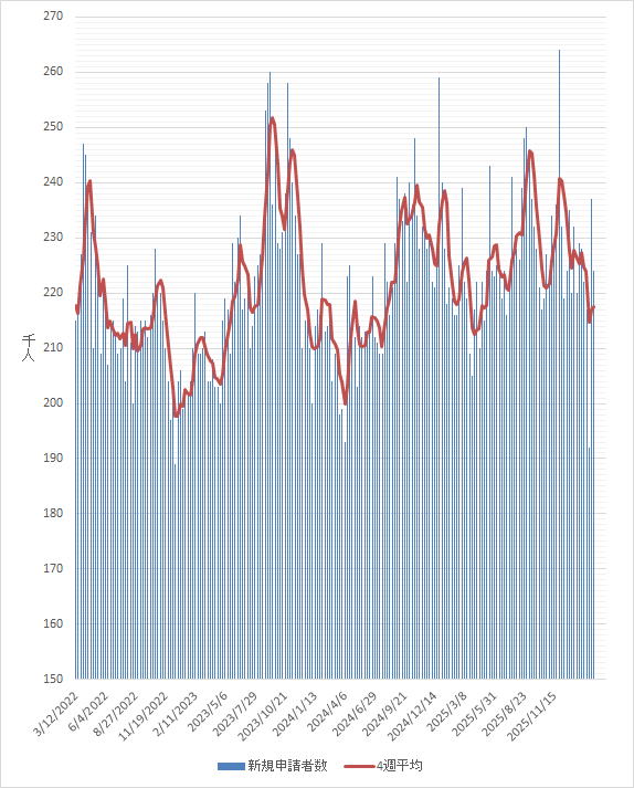 アメリカにおける失業保険の新規申請者数(週間) グラフの下にある注をかならずお読みください