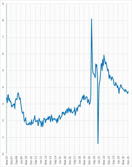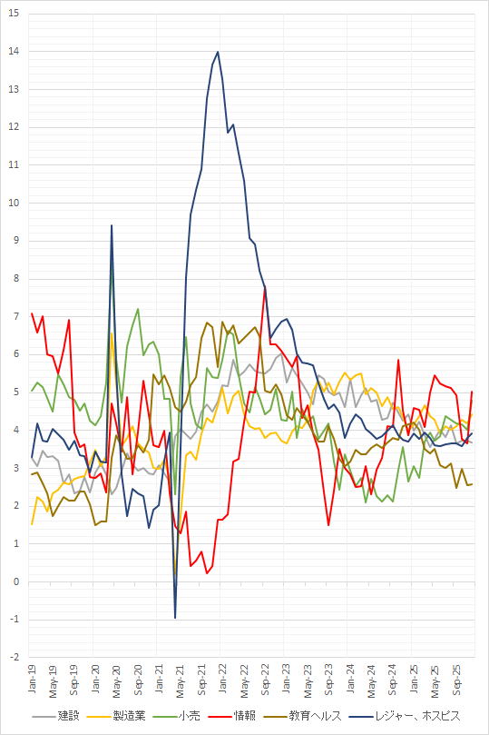 2007年3月~2025年12月(季節調整値、民間企業の総計)