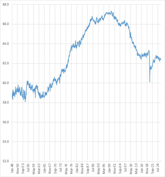 | アメリカにおける労働力率(労働参加率)の推移 |