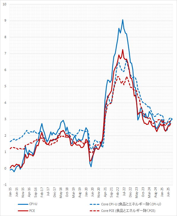 アメリカにおけるインフレ率の推移(前年同月比) (2015年1月~2025年9月)