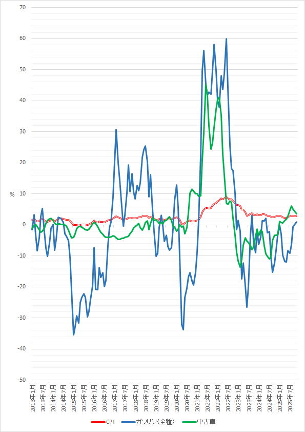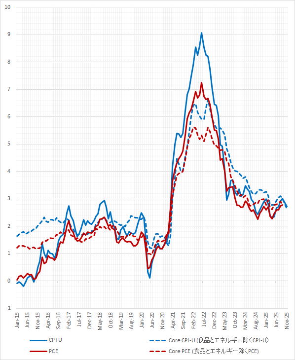 アメリカにおけるインフレ率の推移(前年同月比) (2015年1月~2025年11月)