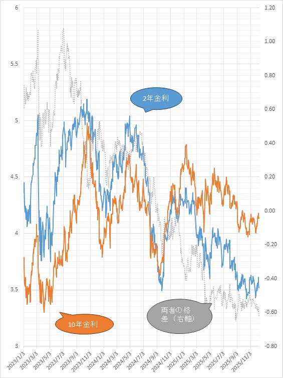 注:2024年8月28日の終値で、10年国債の利回りが2年国債を上まわった。